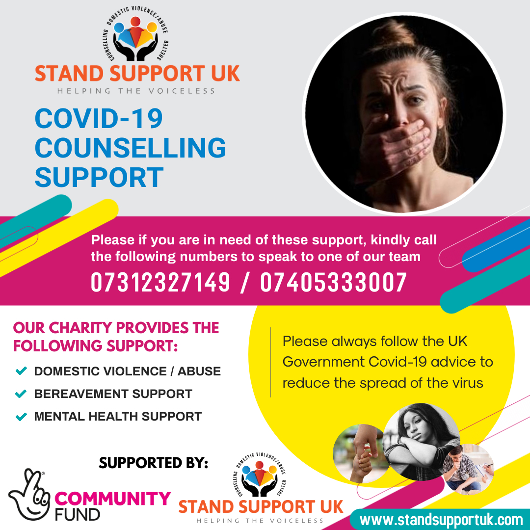 Stand Support UK is providing counselling support to people who are experiencing domestic violence/abuse,